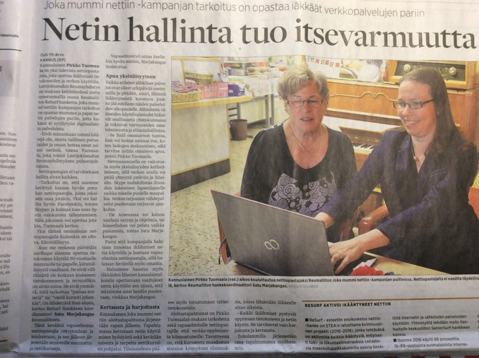 ReSurf -hankkeessa kokeillaan ja pilotoidaan Joka mummi nettiin -ryhmäopastusmallia Reumaliiton jäsenyhdistysten kanssa. Pilotin kokemuksista kootaan toimivimmat käytännöt oppaaksi yhdistyksille ja yhteisöille, jotka suunnittelevat nettiopastustoiminnan käynnistämistä.